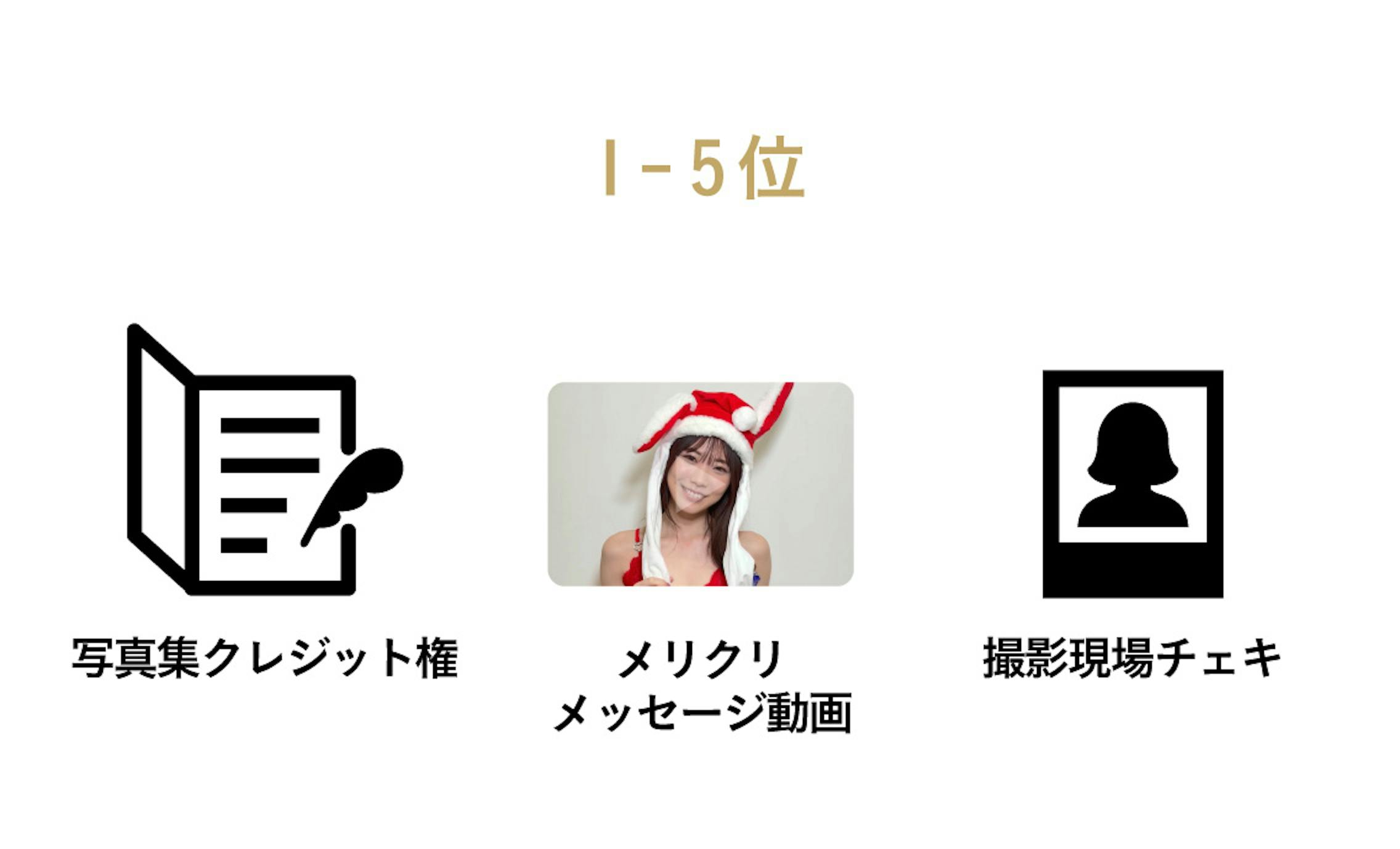 5位~1位:写真集クレジット権 / メリクリメッセージ動画 / 撮影現場チェキ